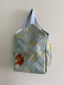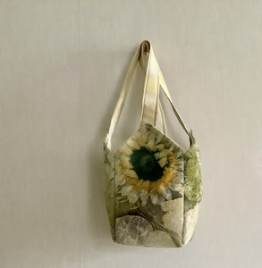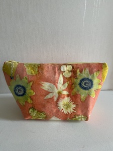 het sluit met een rits. Als bladeren heb ik geprint met bloeiende oregano, kamille, druif, vrouwenmantel, salie, acer, wilg hortensia bloem en -blad. Het is een stevig tasje en er is er maar één van.